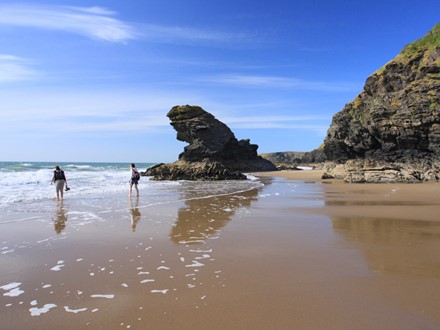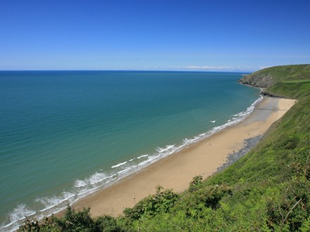 Mae traeth Penbryn, gyda’i dywod mân euraidd, yn swatio dan lethrau coediog. Yno, fe allwch chi chwilota mewn pyllau glan môr ac ogof smyglwyr. Mae hefyd yn lle hyfryd i syllu ar y sêr liw nos.