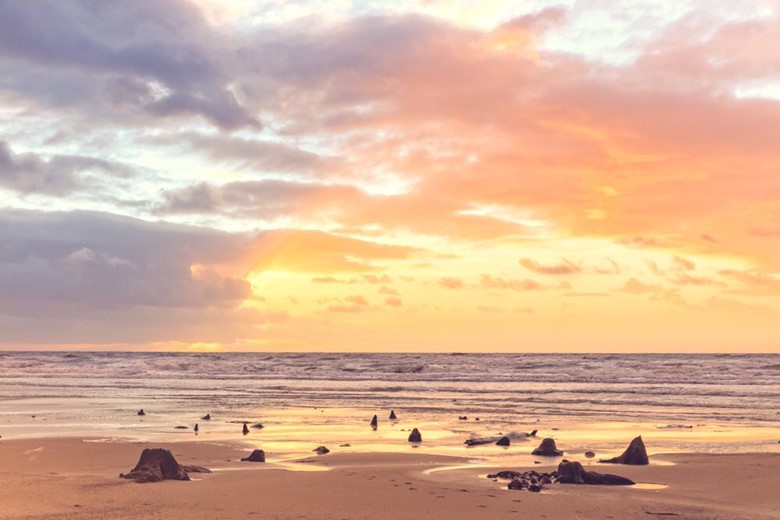 Dogs will love to play between the pools around the preserved tree stumps of the submerged forest along a long stretch of beach between Borth and Ynyslas.