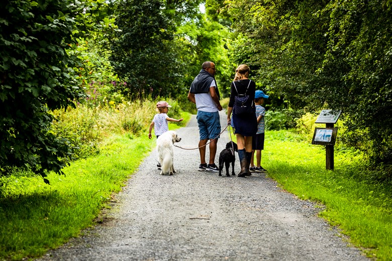 Croesawir cŵn ar dennyn yng ngwarchodfeydd yr Ymddiriedolaeth Bywyd Gwyllt a Chyfoeth Naturiol Cymru.